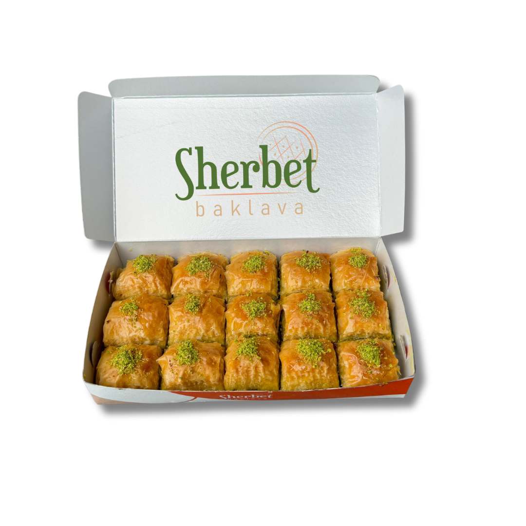 Onze baklava is bereid met alleen de beste pistachenoten en pure boter.